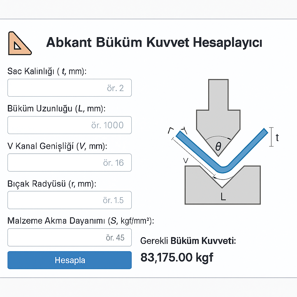 📐 Abkant Büküm Kuvveti Hesaplayıcı